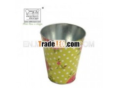 Printed metal small vase yellow dot rose.Printed zinc galvanized vase.